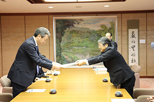 また、市議会としましては、今回の台風被害の中での市議会の行動の検証や議会報告会における市民の皆様からの意見等を踏まえ、次の3項目について検討しており、今後、市との協議が必要と考えていることを併せて市長へ伝えました。