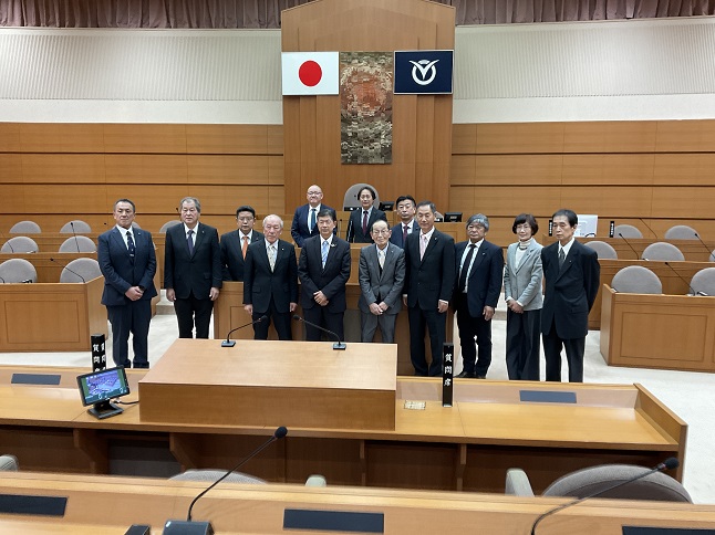 令和8年2月4日に茨城県常陸大宮市議会 議会運営委員会の視察団が当市議会を視察に訪れました。 議会運営委員会の平野明彦委員長、議会改革推進特別委員会の猪瀬浩委員長、議会運営委員会・議会改革推進特別委員会の渡辺純一副委員長、平野英男議長及び諸岡賛陛副議長が出席し、当市議会の「政策提言の取組」について視察を行いました。